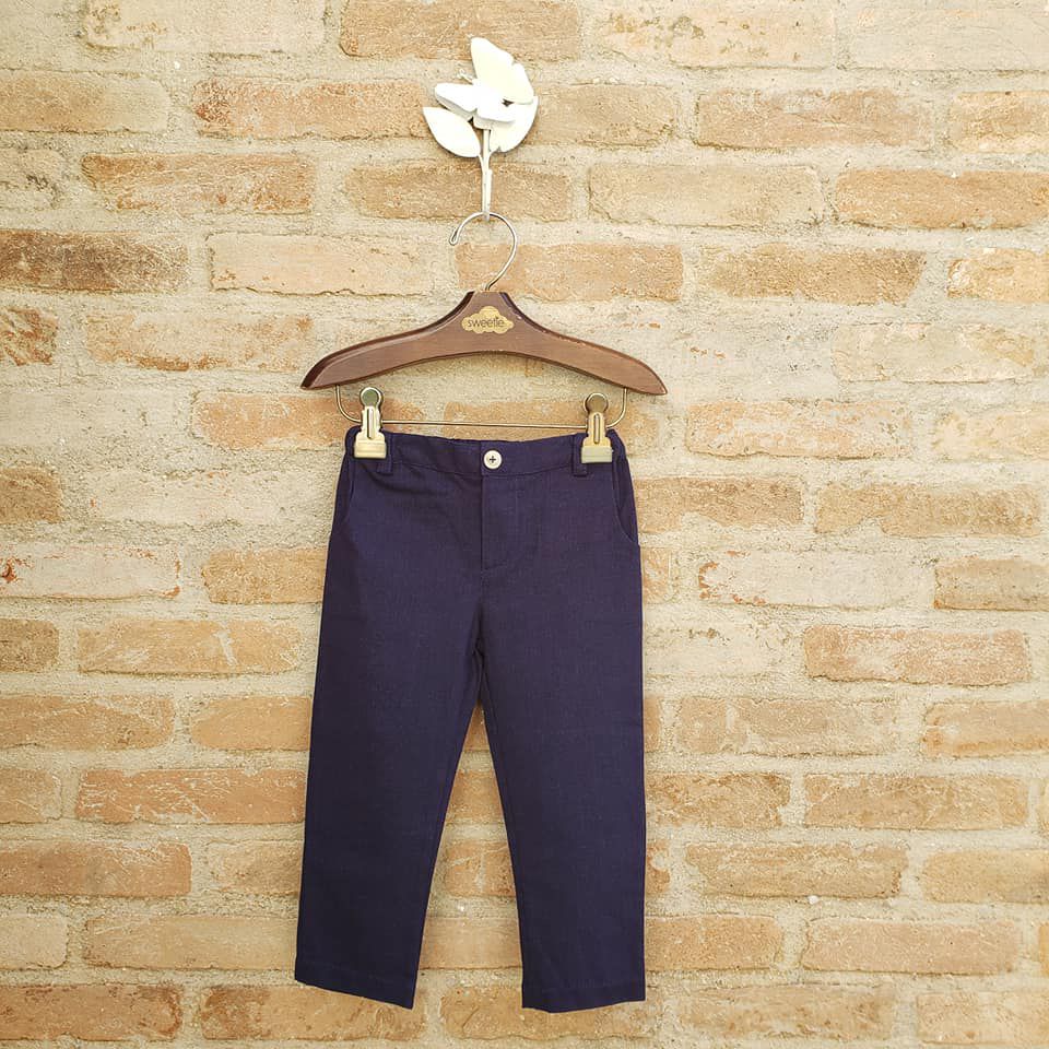 Calça menino com elastico na cintura e bolso lateral.